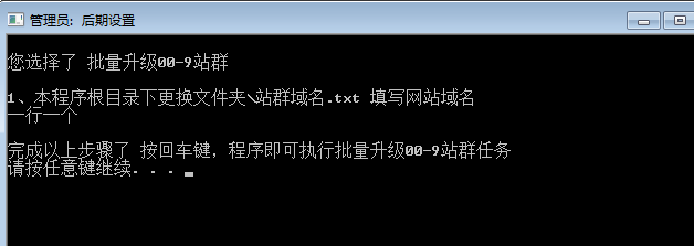 5.属于5 批量升级程序。根据提示输入需要修改配置的网站域名(这个一般都设置过了。没设置的直接设置 已经添加域名的直接跳过)