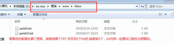 3.zq-asp更换www下新建bbxx文件夹,然后复制peizhi.txt(或者 peizhi2.txt) 到bbxx下面。无关文件不要在此文件夹下。