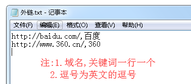 (注意:使用此功能,默认外链.txt 有多少网址和关键词,上的站就会出现多少条友链。不会随机调用。)
