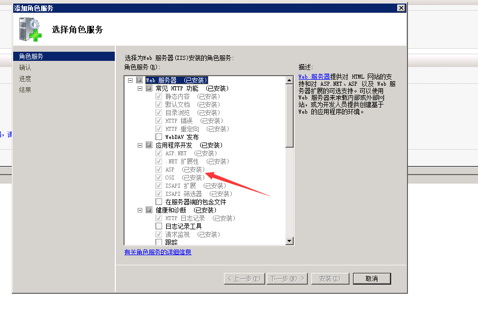 如果服务器没有装iis 就选择 添加服务 - 勾选ASP 如下图: