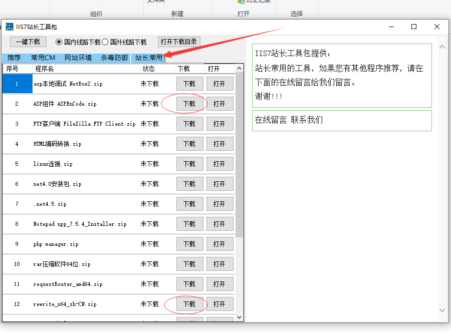 3.下载iis7站长工具包:http://www.iis7.com/uploads/2019/IIS7%E7%AB%99%E9%95%BF%E5%B7%A5%E5%85%B7%E5%8C%85.zip